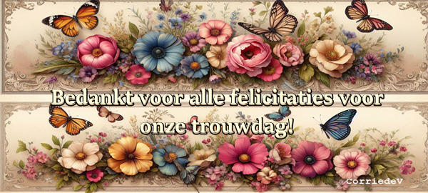Bedankt voor alle felicitaties voor ons huwelijk!/trouwdag!